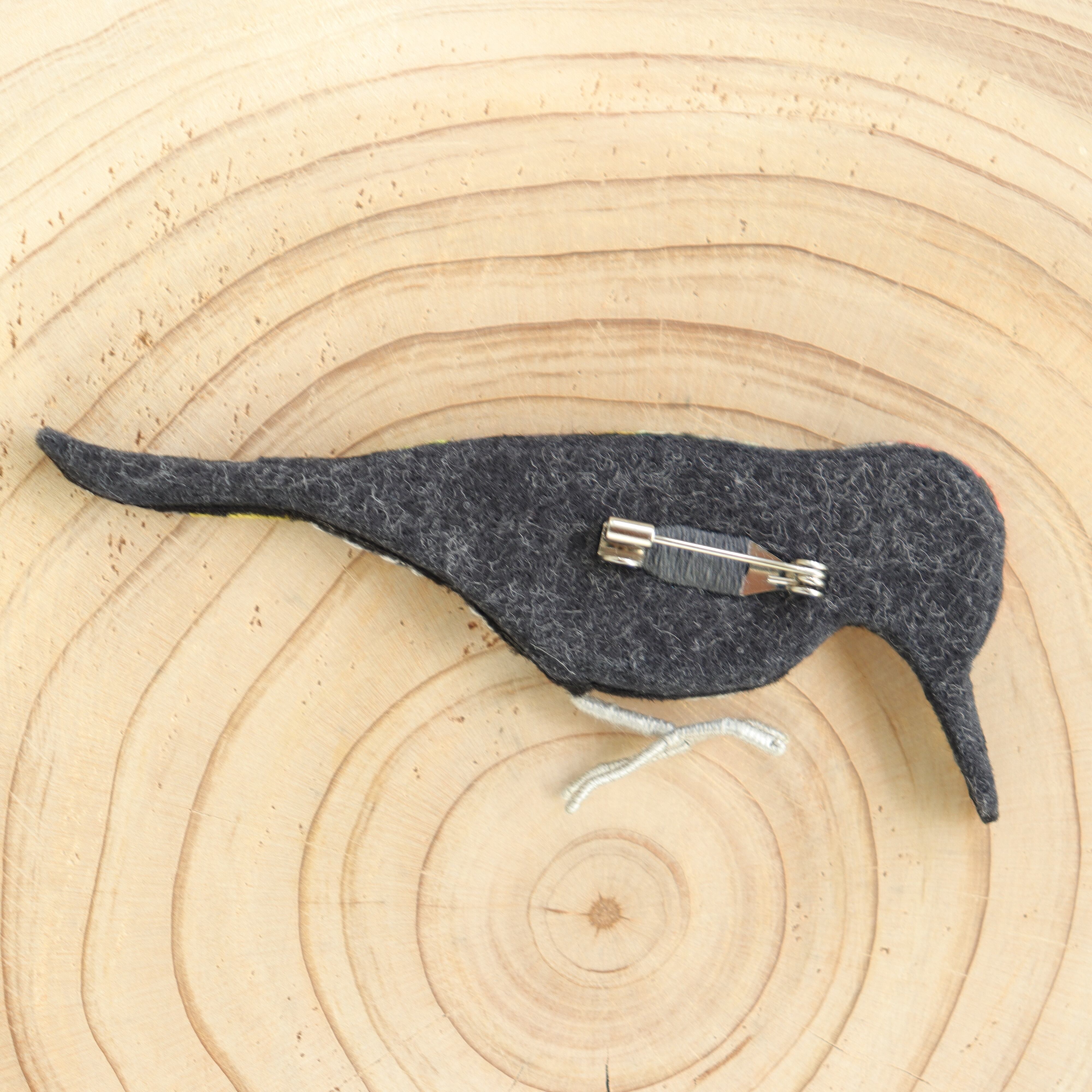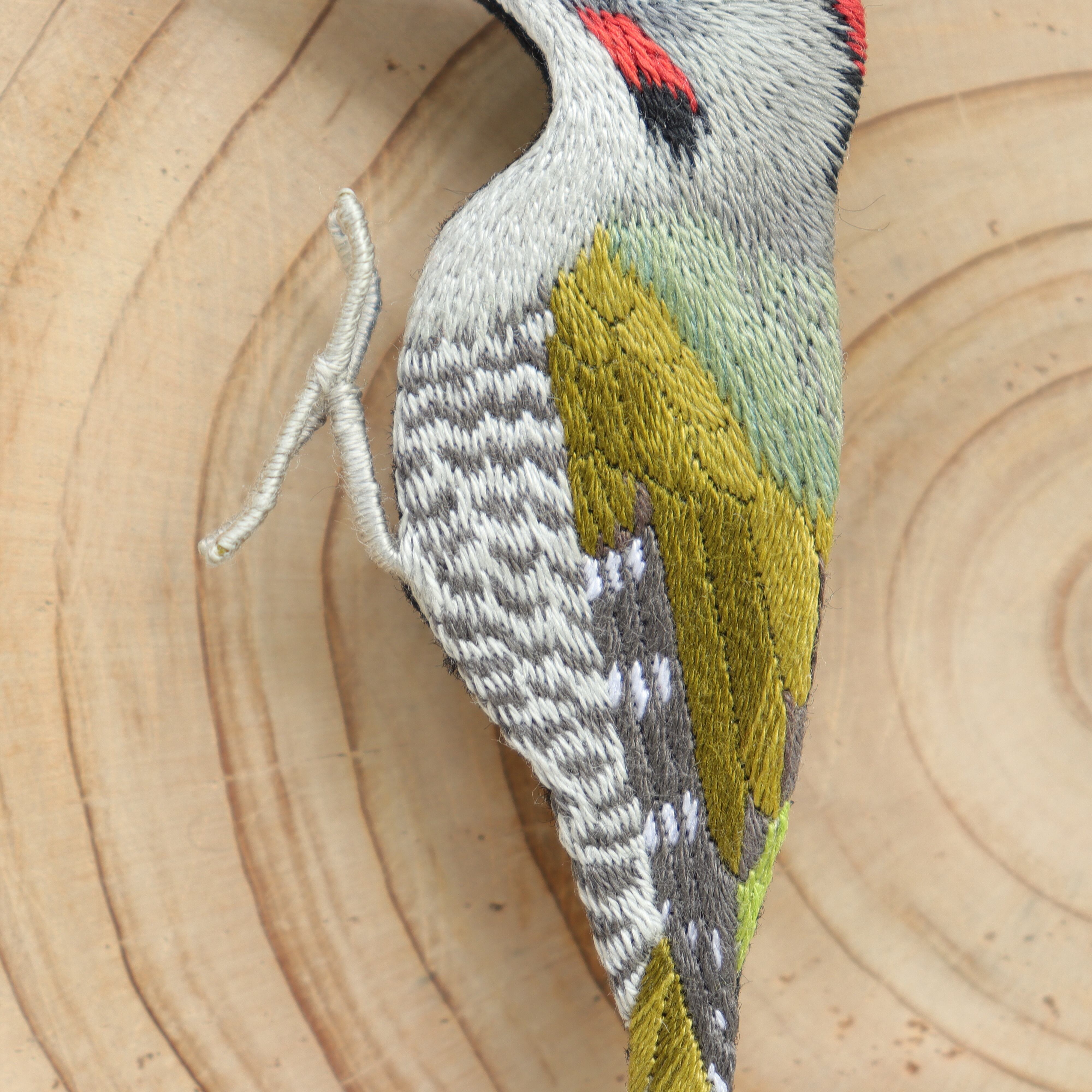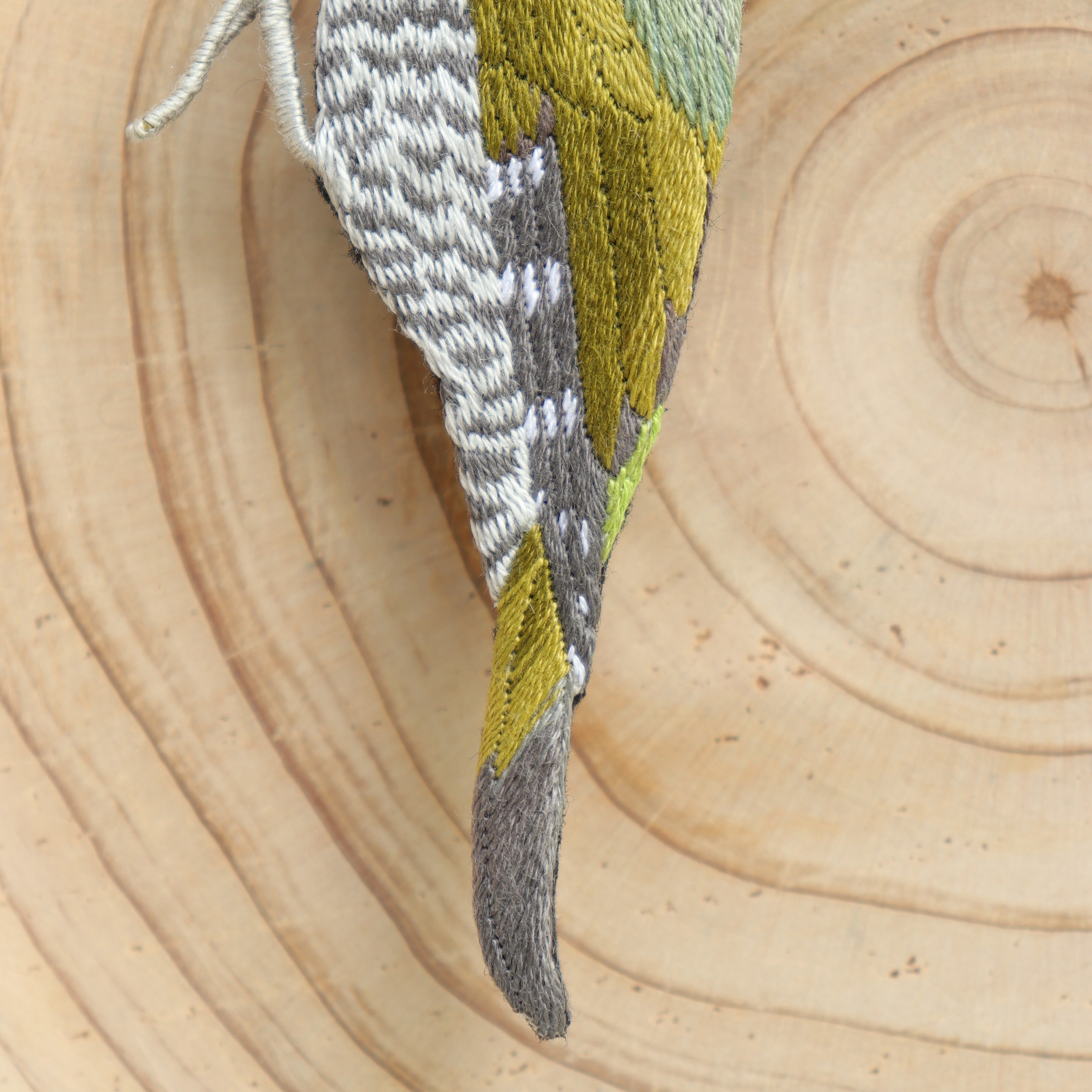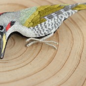 アオゲラの刺繍ブローチ