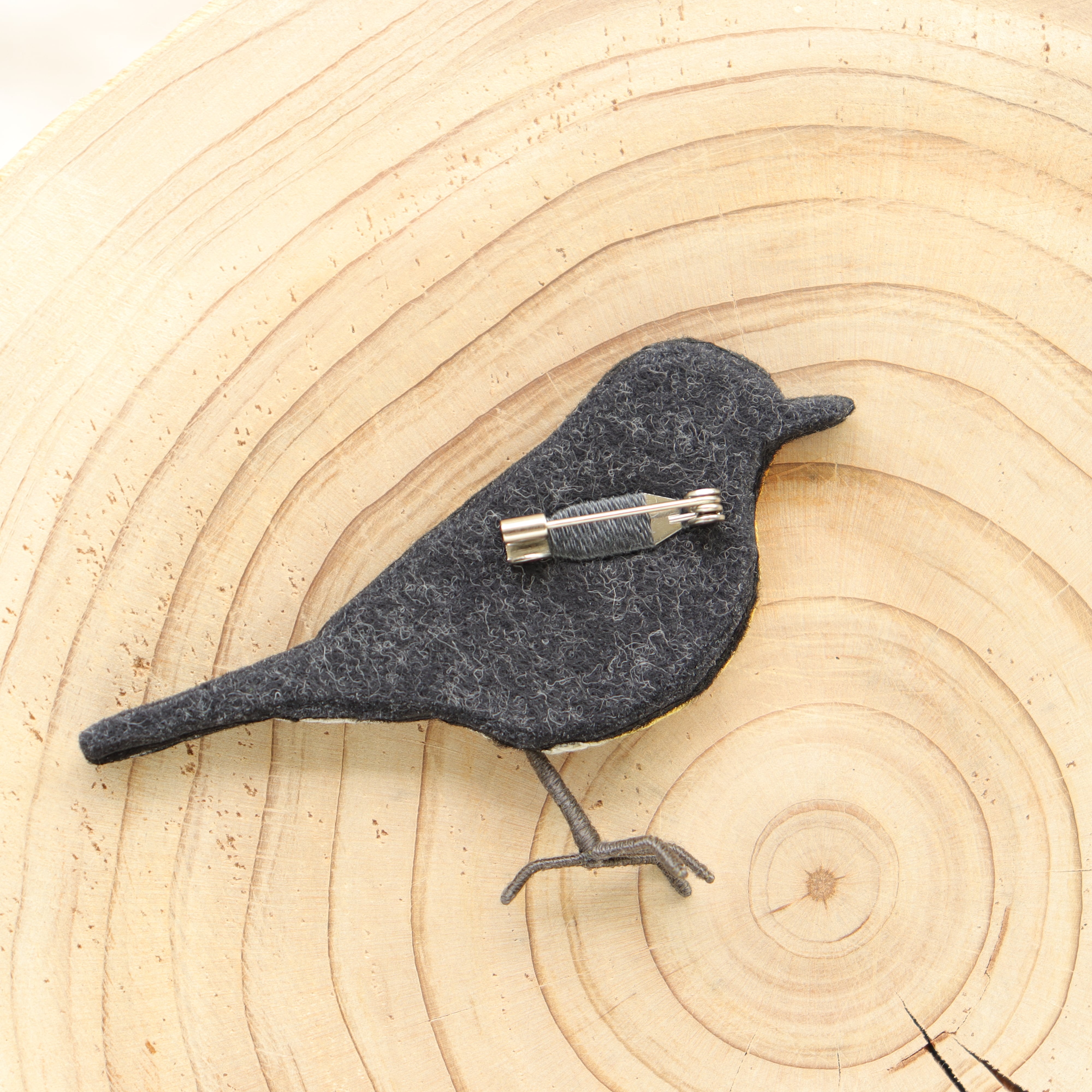 キビタキ♂の刺繍ブローチ