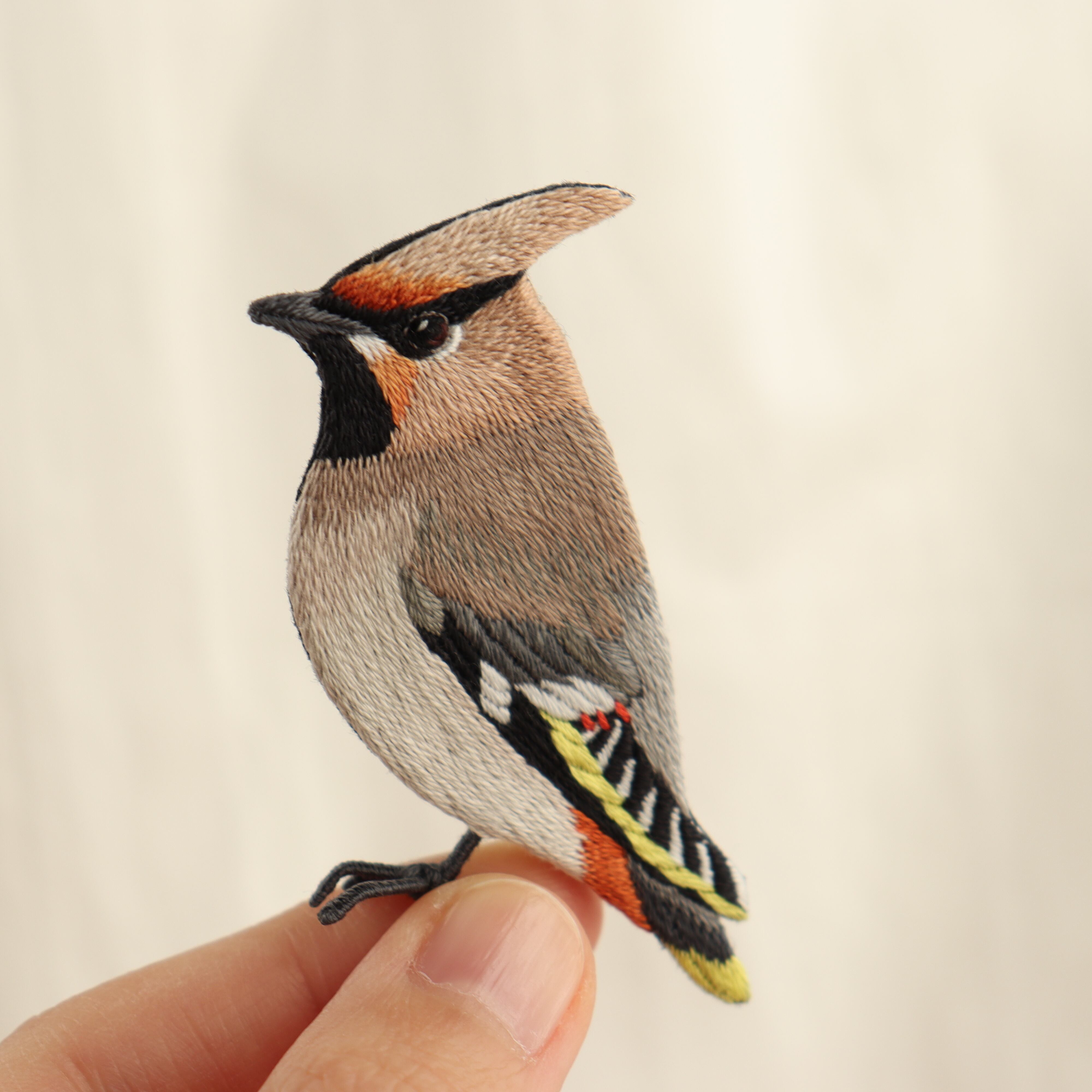 キレンジャクの刺繍ブローチ