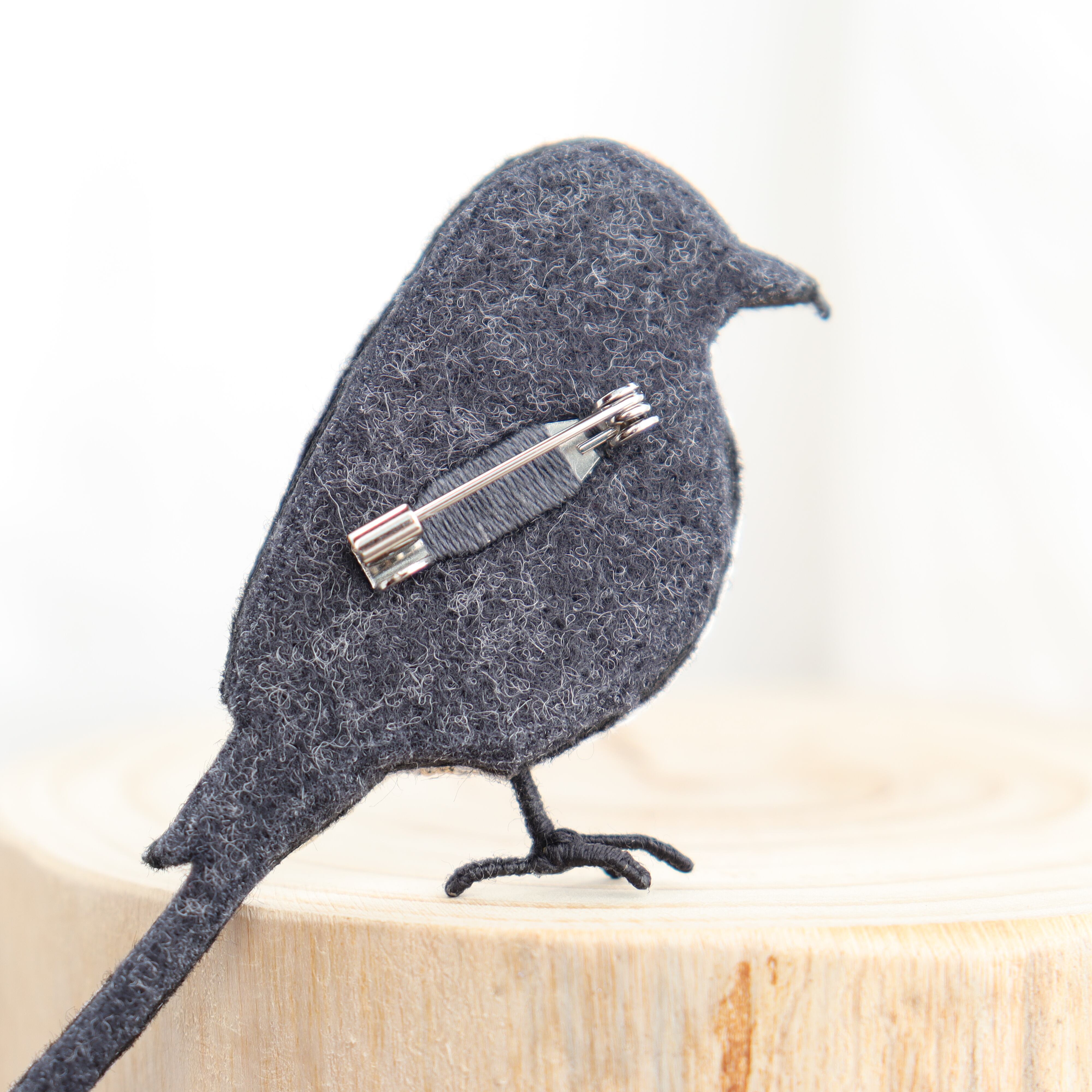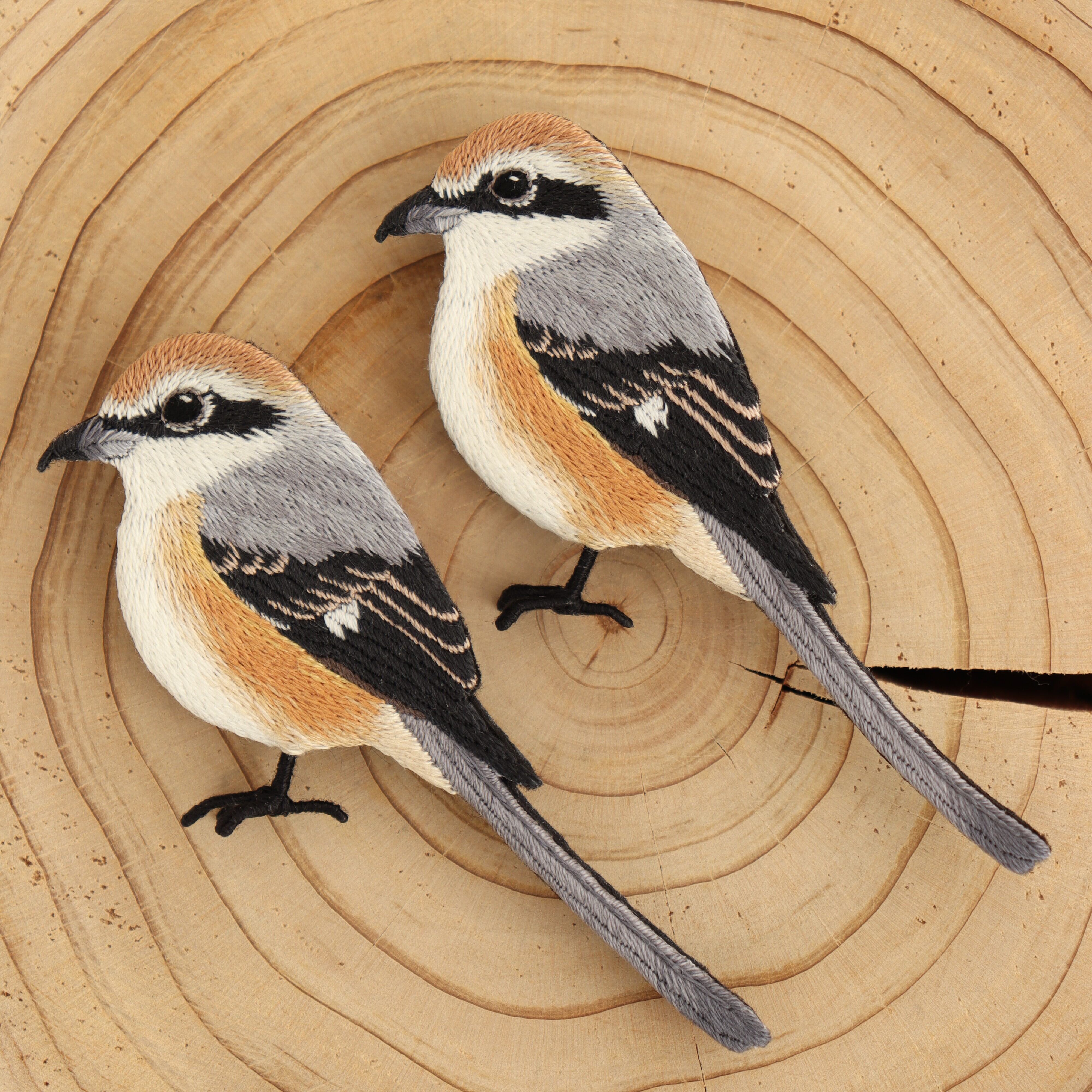 モズの刺繍ブローチ