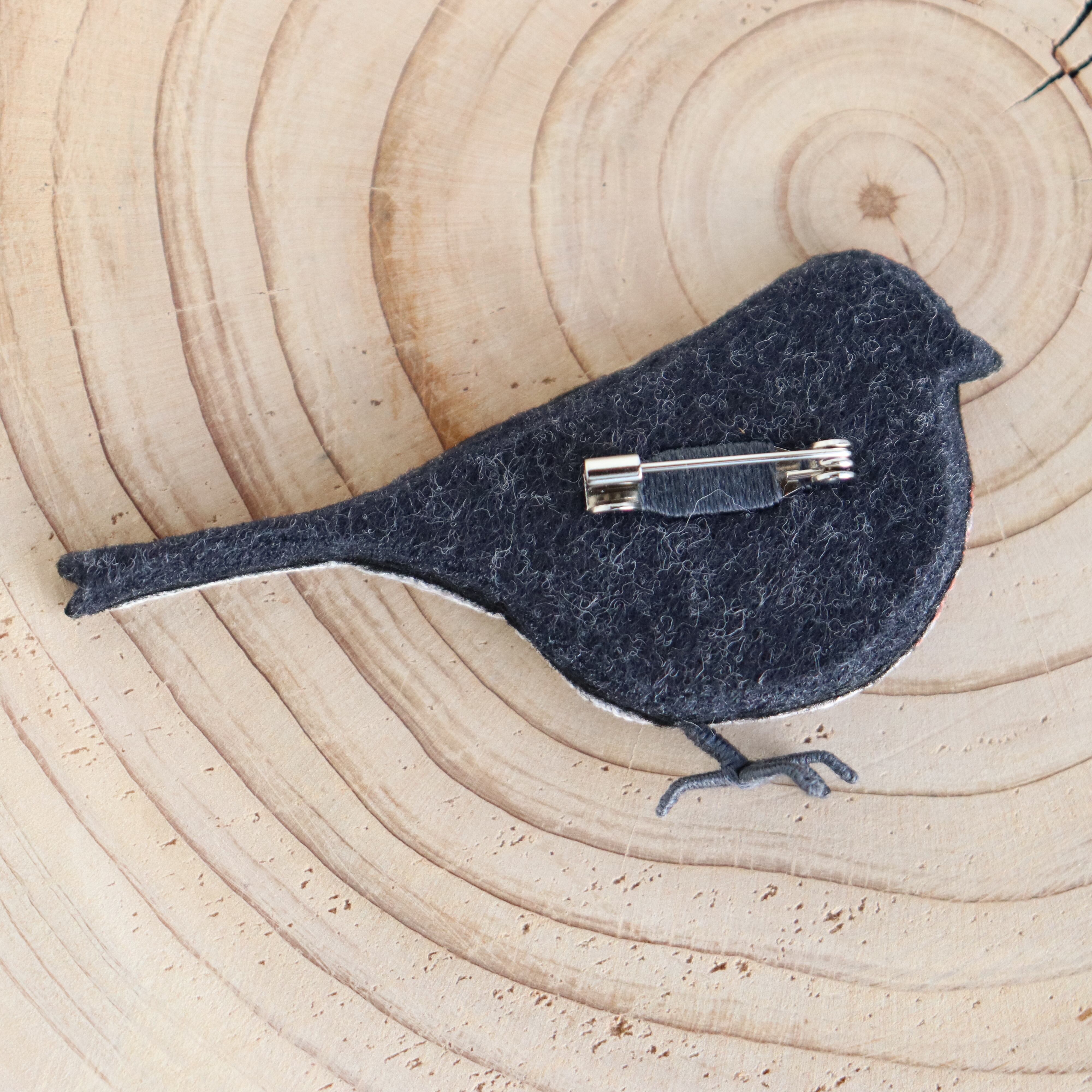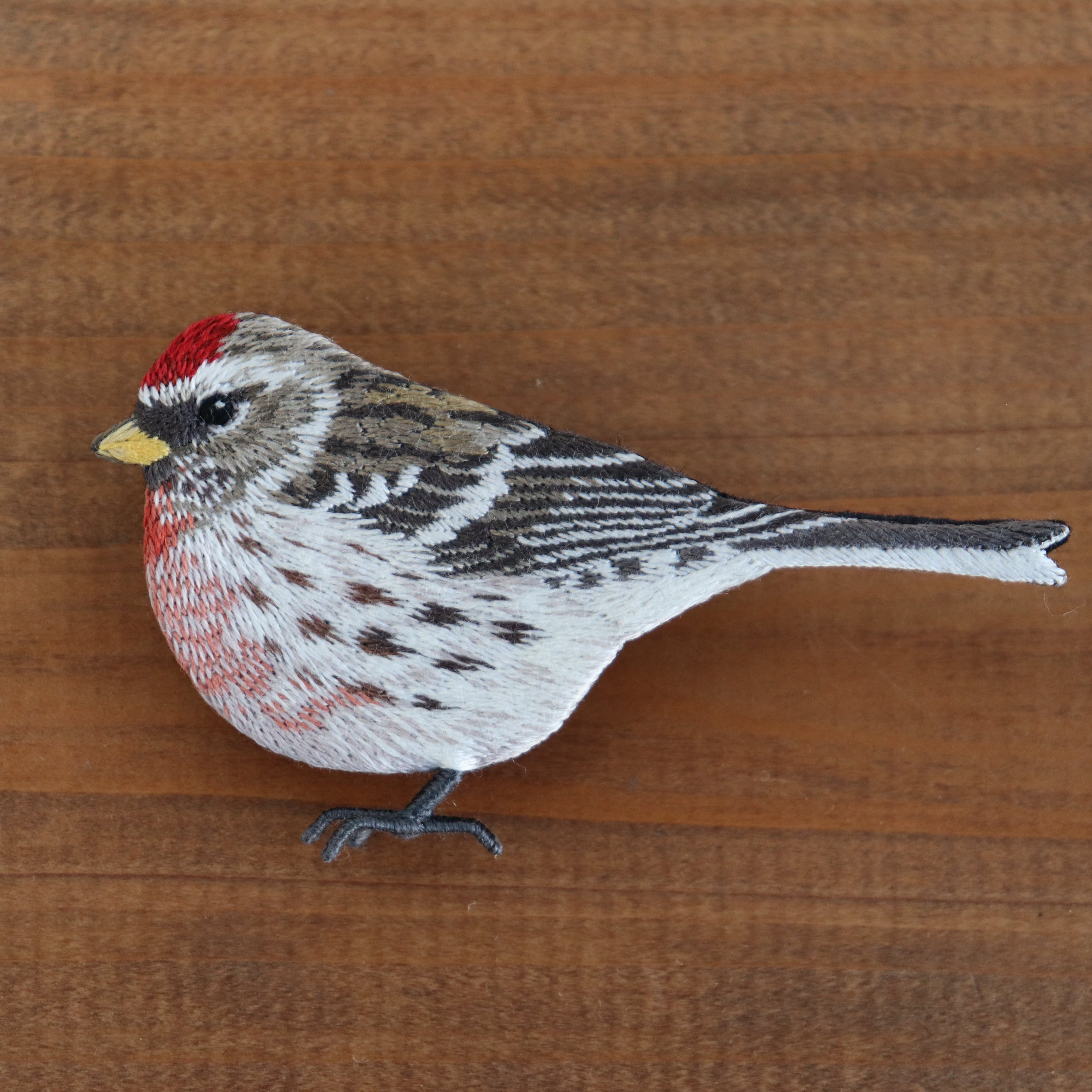 ベニヒワの刺繍ブローチ