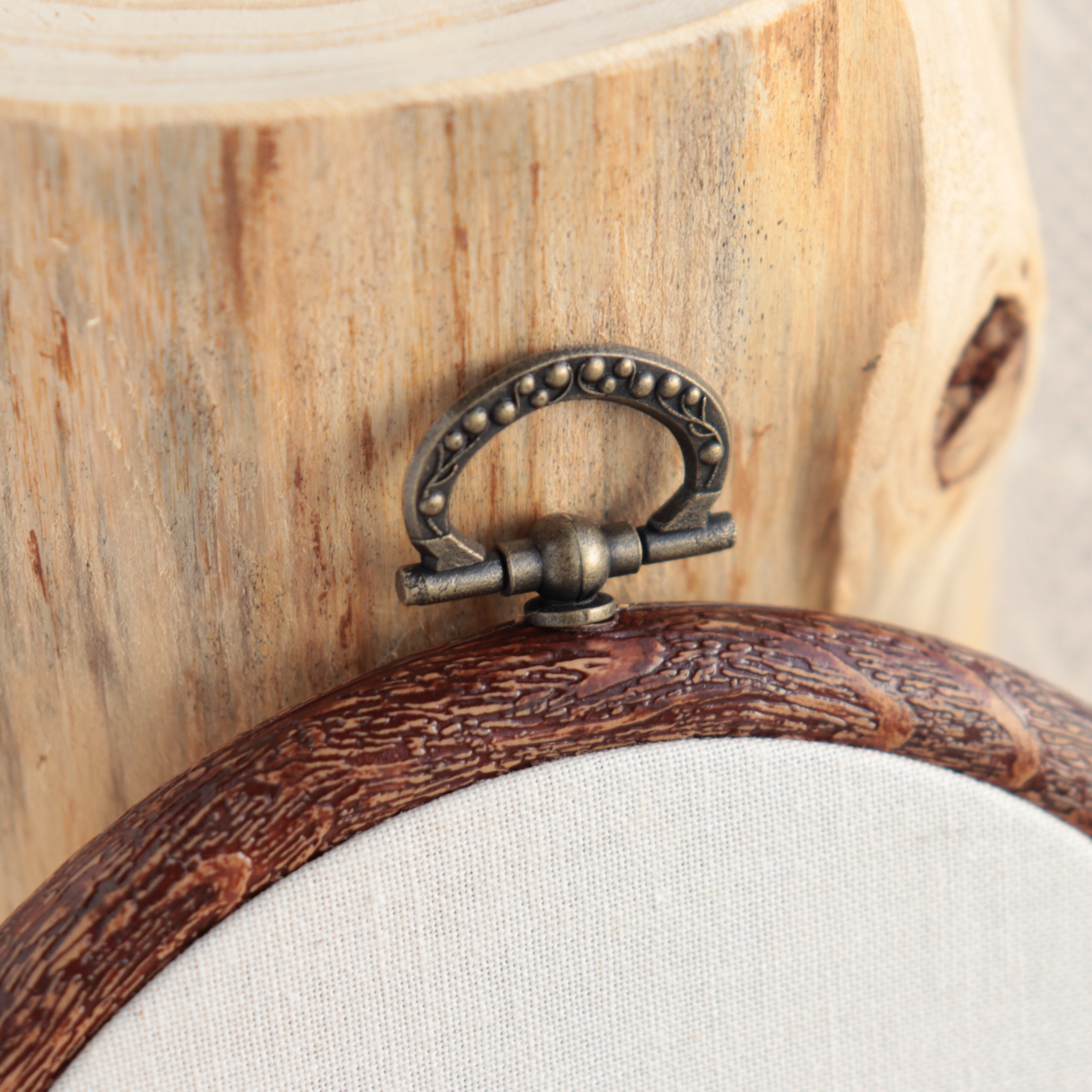 木目調のフレームにレトロなスタンプで英名を表記しています